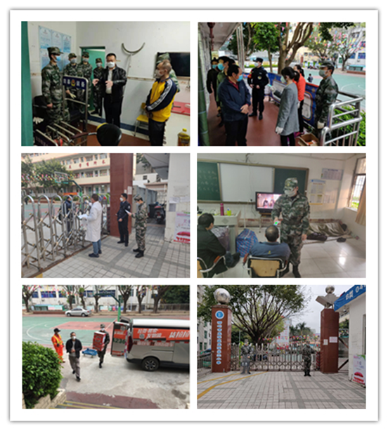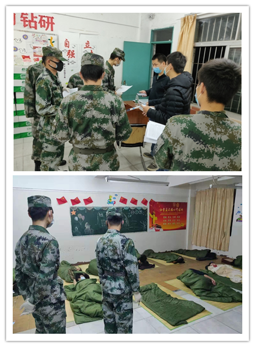 每日巡检结束,将三和人才市场闲置人员安排于龙华第三小学应急安置点。龙华民兵连的战士不分白天黑夜,用自己的身体组成一道疫情防线,把安全留给身后的人。龙华民兵连连长陈勇说:“坚韧与勇气是每一名战士必备的素质。”此刻无言,无需多言。